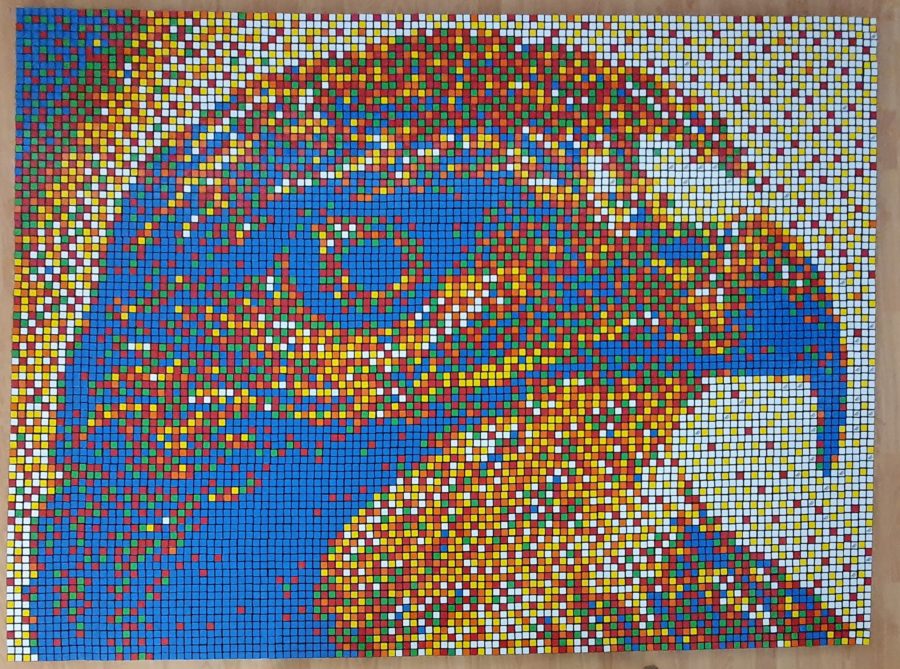 2022_ Publié le 20 mai 2022 à 900 × 669 dans 2022_ Géante mosaïque 58×43; 2 494 cubes 2x2x2 équivaut 1 108 cubes 3x3x3